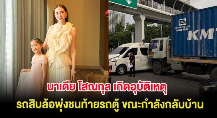 ทำเอาแฟนๆเเละคนในวงการต่างเป็นห่วงกันอย่างมากเมื่อล่าสุดนักแสดงเเละพิธีกรสาว นาเดีย โสณกุล เกิดอุบัติเหตุ รถสิบล้อพุ่งชนท้ายรถตู้ ที่เจ้าตัวนั่งกลับจากบ้านพร้อมลูกสาว โดย นาเดีย เล่าเหตุการณ์ว่า ฟาดเคราะห์เบอร์แรง นั่งรถกลับบ้านอยู่ดีดี โมนาลุกออกจากคาร์ซีทเดินมาหาแม่ซึ่งนั่งอยู่เบาะหน้าด้านหลังคนขับ